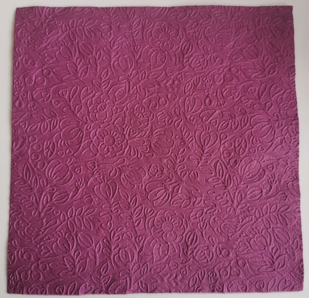 Reliéfne servítky purpurové sú elegantné, výrazné a praktické zároveň. Vďaka trojvrstvovej kvalite sú pevné, ľahko sa skladujú a zároveň dodajú každej dekorácii luxusný a harmonický nádych. Perfektne doplnia svadobné výzdoby, oslavy a aranžmány v kombinácii so zlatou, krémovou, bielou i kontrastnými tmavými farbami, pričom ich sýta purpurová farba krásne vynikne vedľa kvetín, sviečok či ďalších dekorácií.