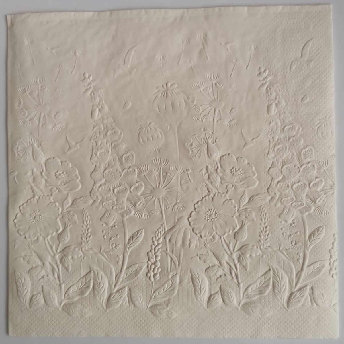 Reliéfne servítky slonovinová kosť (Ecru) 33×33 cm, 20 ks – vzor Divé kvietky