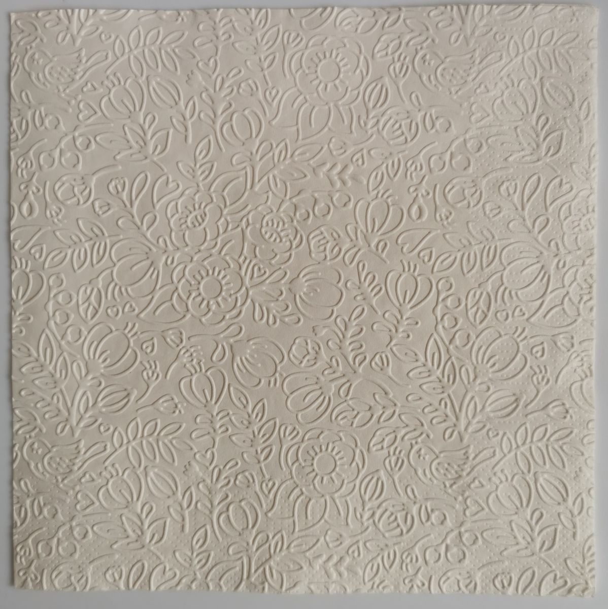 Reliéfne servítky slonovinová kosť (Ecru) 33×33 cm, 20 ks – vzor Kvietky a listy