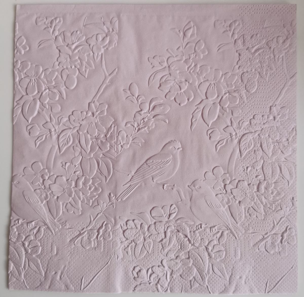 Reliéfne servítky svetlofialové (Pale Lilac) 33×33 cm, 20 ks – vzor Škovránky v záhrade