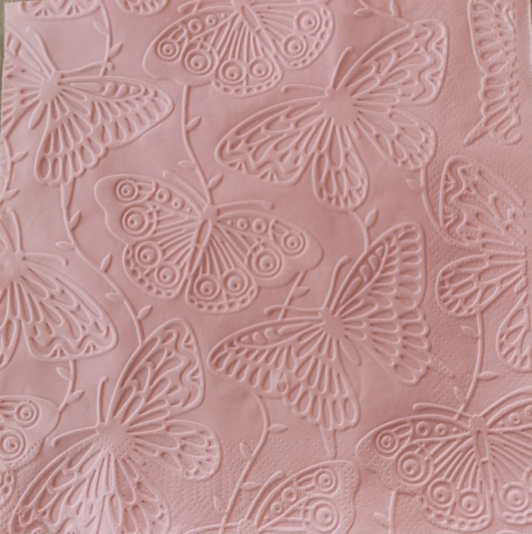 Reliéfne servítky svetloružové (Baby Pink) 33×33 cm, 20 ks – vzor Motýle