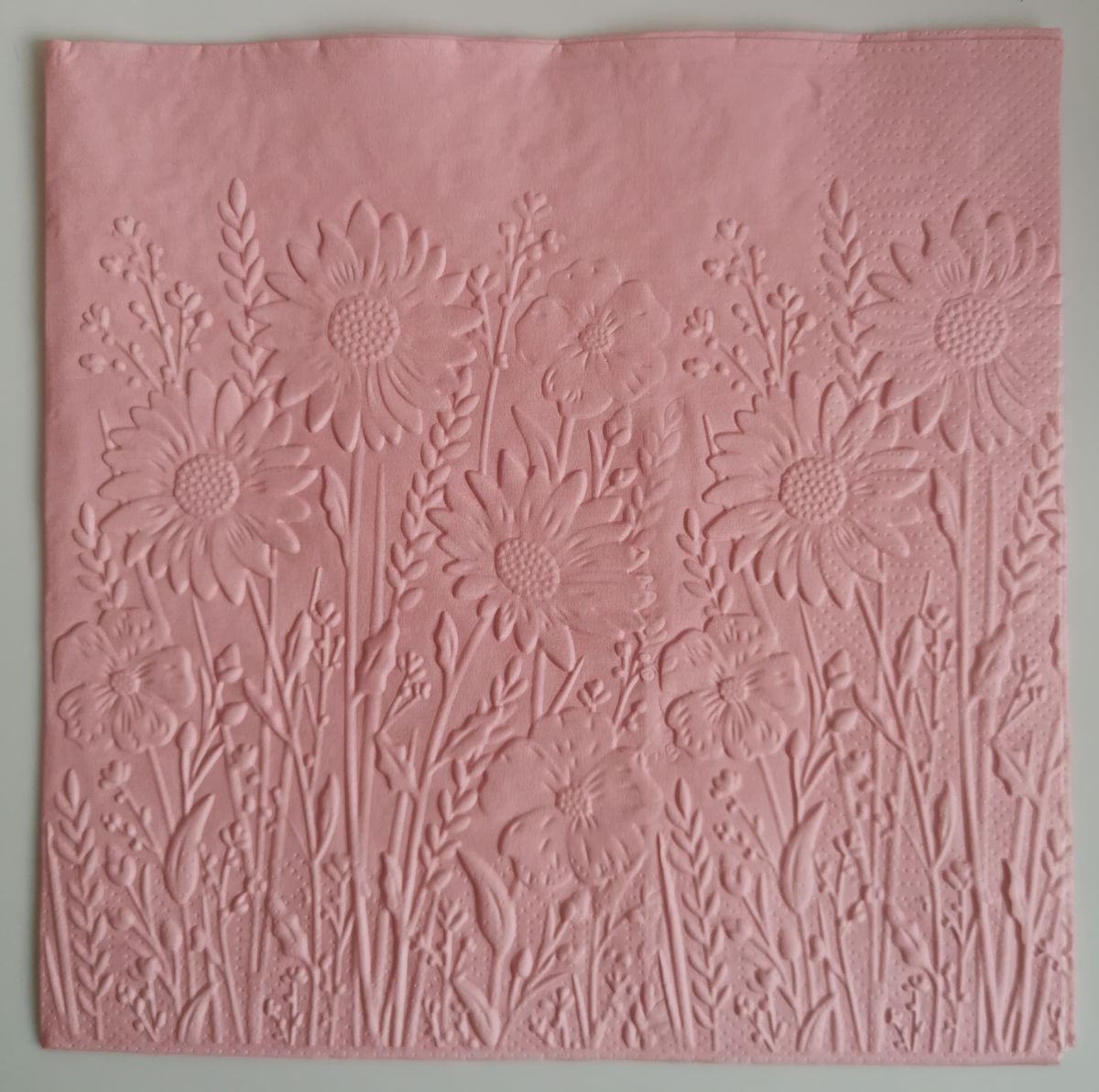 Reliéfne servítky svetloružové (Baby Pink) 33×33 cm, 20 ks – vzor Rozkvitnutá lúka