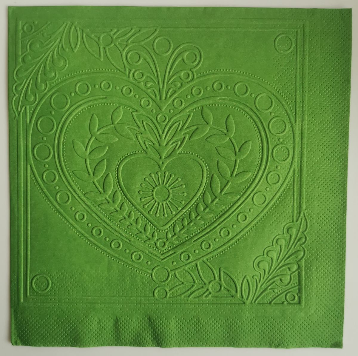 Reliéfne servítky tmavozelené (Dark Green) 33×33 cm, 20 ks – vzor Veľké srdiečko
